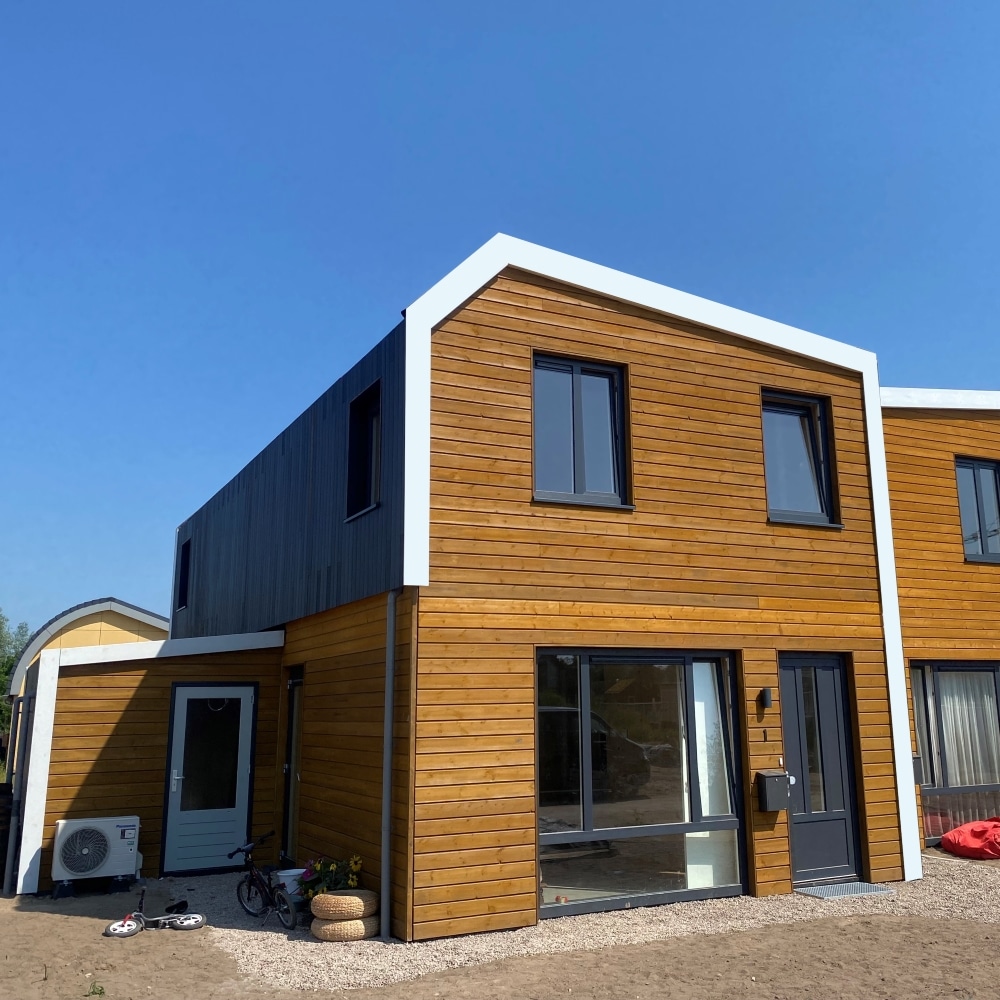 De permanente sociale huurwoningen bouwen wij in opdracht van woningcorporatie SallandWonen in een bijzonder duurzame wijk in Olst. De modulaire woningen maken wij van CLT, houtvezelisolatie, bamboe en grenen in lijnolie. Dat betekent gezond wonen in een dampopen woning. Voor de overige 10% aan materiaal kiezen we zoveel mogelijk gerecyclede grondstof of met een zo klein mogelijk milieubelasting. Zo hebben de woningen een MPG van onder de 0,5.