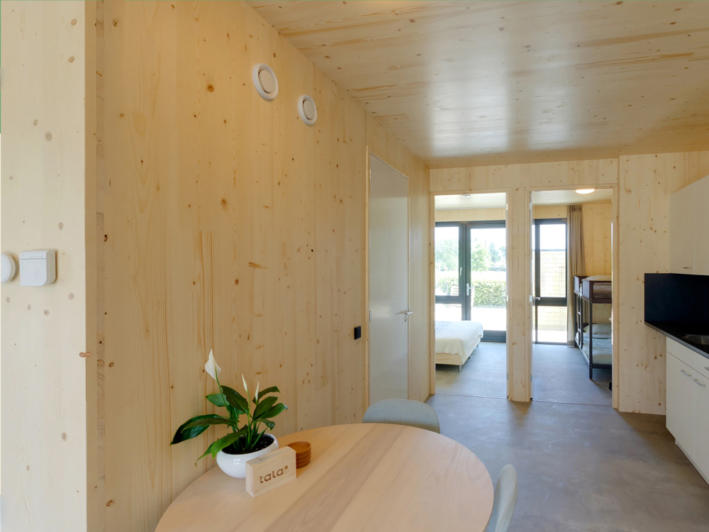 Twijg bestaat bijna helemaal uit natuurlijke, lichte materialen zoals fijnspar, vlas en bamboe. Wij werken bewust met een constructie van massief hout (CLT) en andere natuurlijke materialen. Zodat langdurig grote hoeveelheden CO2 opgeslagen kunnen worden. Tala Twijg is standaard energieneutraal, ook niet onbelangrijk met de huidige energiekosten.