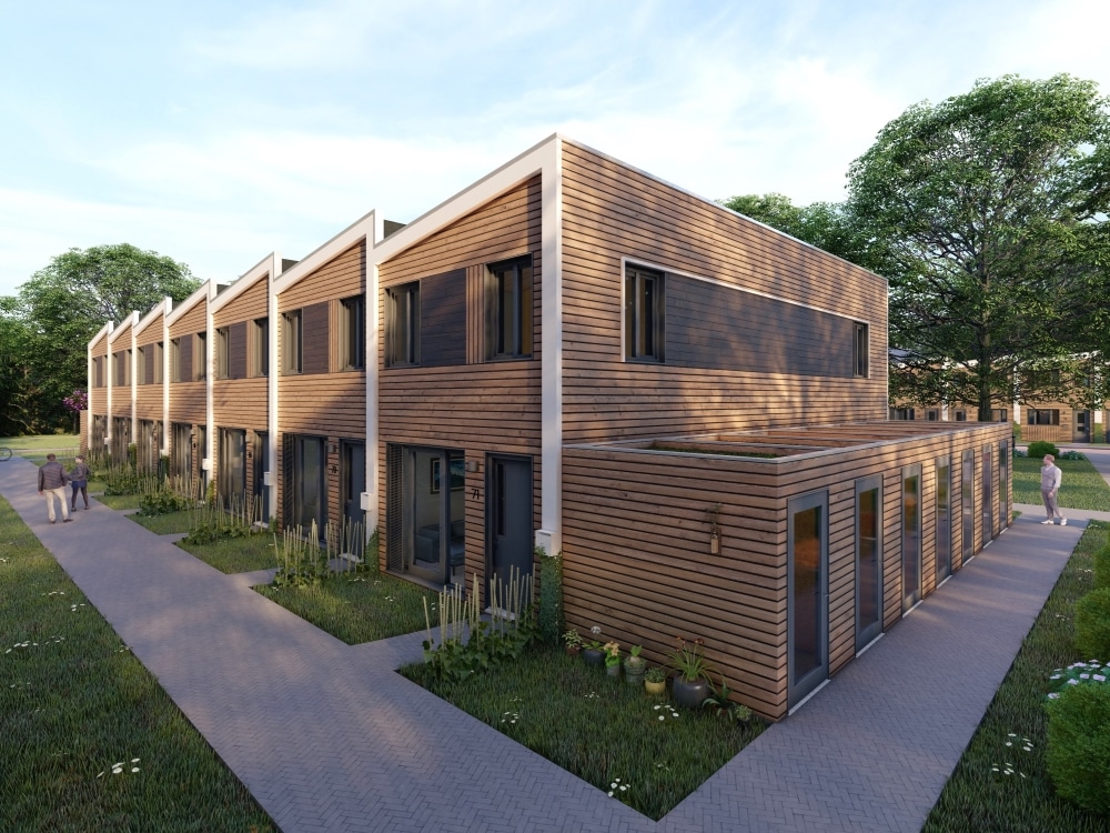 De modulaire woningen van hoge kwaliteit bestaan voor maar liefst 90% uit natuurlijk hergroeibaar materiaal. Kruislaaghout (CLT) voor de constructie, houtvezelisolatie en de gevel is bekleed met grenenhout in lijnolie en bamboe. Zo slaan de woningen veel meer CO2 op dan voor de bouw wordt uitgestoten. Daarnaast nemen we natuurinclusieve maatregelen. De woningen zijn door droogbouw volledig demontabel en herbruikbaar.
