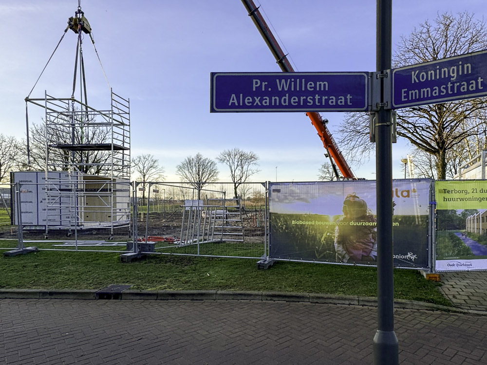 Terborg – Aan de Koningin Emmastraat in Terborg verrijzen in rap tempo 21 biobased huurwoningen. Op uitnodiging van duurzaam bouwbedrijf Tala assisteerden Gerrolt Ooijman, directeur-bestuurder Wonion en wethouder Wonen van de gemeente Oude IJsselstreek Ben Hiddinga op woensdag 8 januari bij de plaatsing van de eerste module. Dit markeert de start van een innovatieve en duurzame samenwerking in de sociale woningbouw.