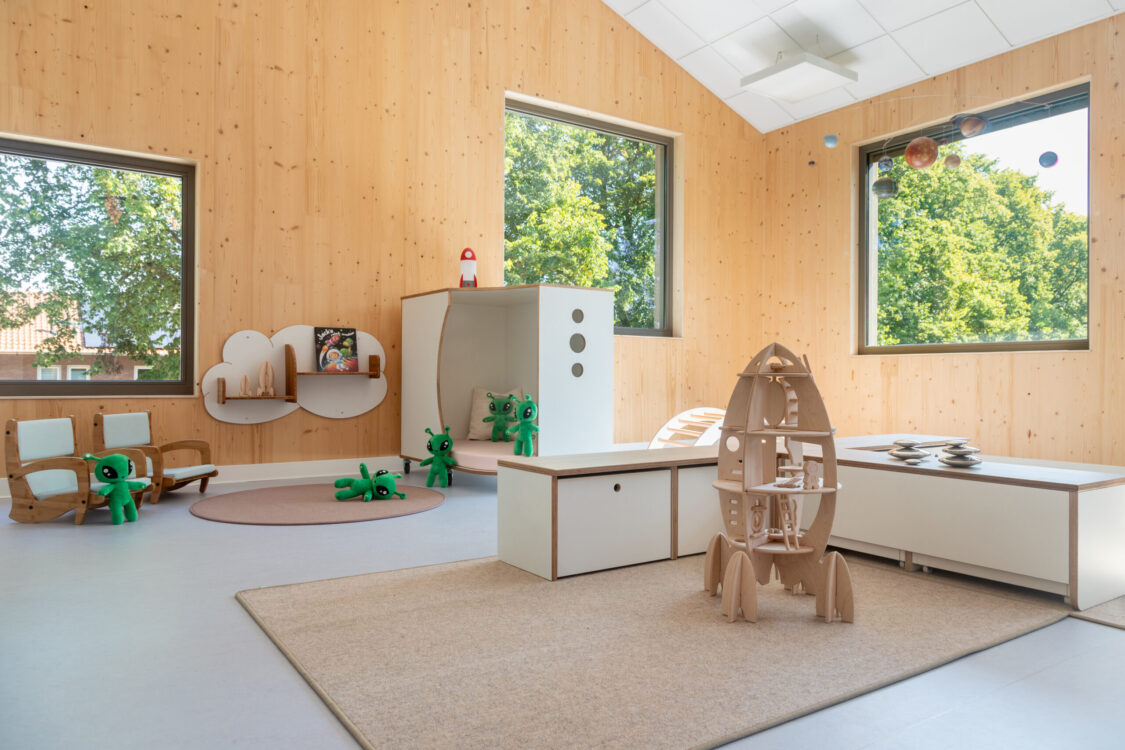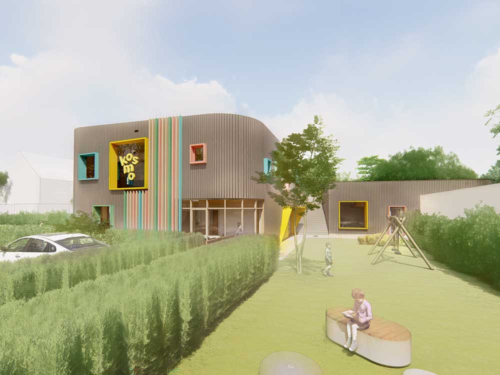 Het nieuwe gebouw zal een lichte, speelse en kindvriendelijke sfeer uitstralen die goed aansluit bij de natuurlijke omgeving. Ook de buitenruimte krijgt een frisse indeling, met volop plek om te spelen en te ontdekken.