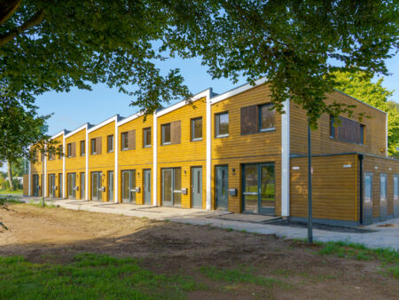 Plannen om huizen te bouwen voor kleine huishoudens van één tot twee personen (PMC 1 en 2)? Dan zijn deze rug-aan-rug woningen dé oplossing. De CO2 neutrale woning is licht, ruimtelijk en voor 90% gemaakt van biobased materialen.