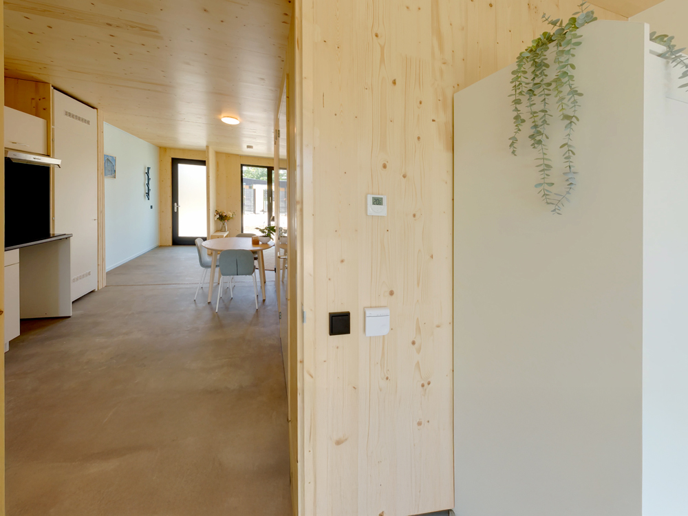 Spelen in een gebouw van CLT en andere natuurlijke materialen. Een gebouw dat daardoor dampopen is en een uitstekend binnenklimaat heeft. De configuratie kan helemaal aangepast worden op de kinderen. Met fijne ruimtes voor rust en slaap. Grote ramen voor veel daglicht en verbinding met buiten. Kinderen en medewerkers ervaren de rust die het hout en andere natuurlijke materialen uitstralen.